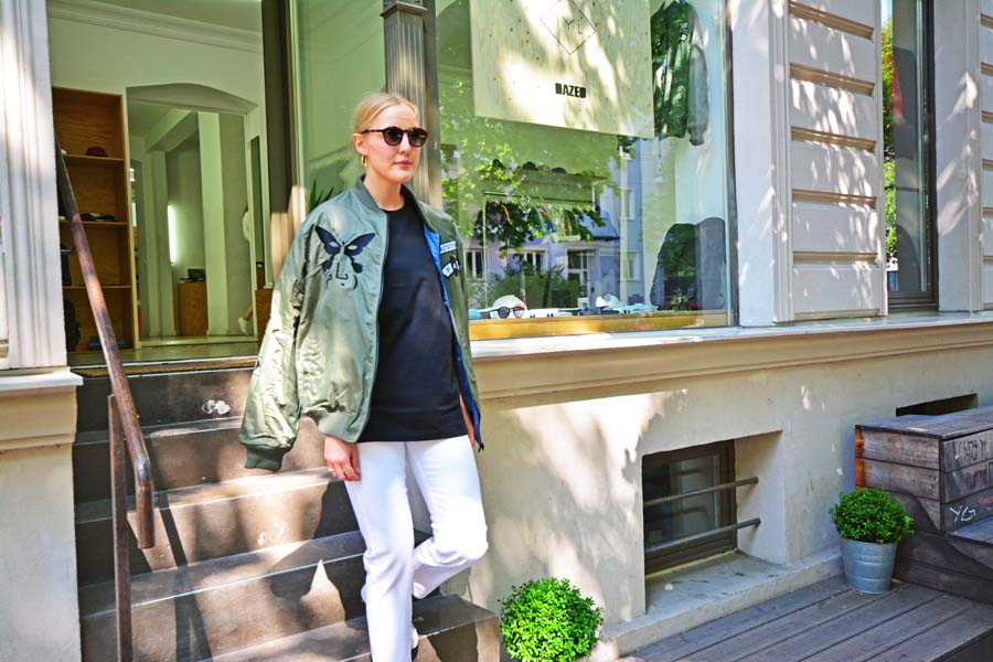 Shirt: Lacoste, Hose: WoodWood, Bomberjacke: Perks and Mini, SUPERCONCIOUS Store Berlin © Holger Jacobs