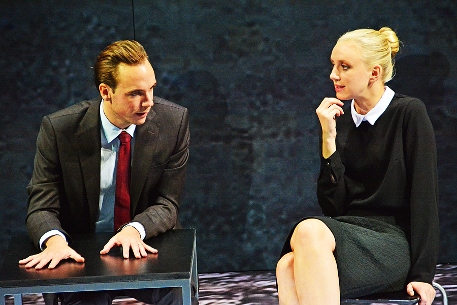 Staatsanwältin Nelson (Franziska Machens) und Angeklagter Lars Koch (Timo Weisschnur), „Terror“, © Holger Jacobs