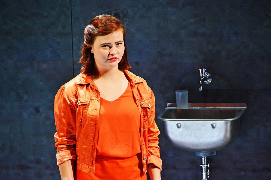 Die Nebenklägerin Franziska Mieser (Lisa Hrdina) wird befragt, „Terror“, © Holger Jacobs