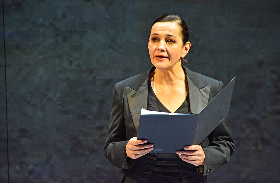 Die Richterin (Almut Zilcher) verliest das Urteil, in Berlin am 3.10.15 waren 207 für schuldig, 255 für unschuldig, „Terror“, © Holger Jacobs