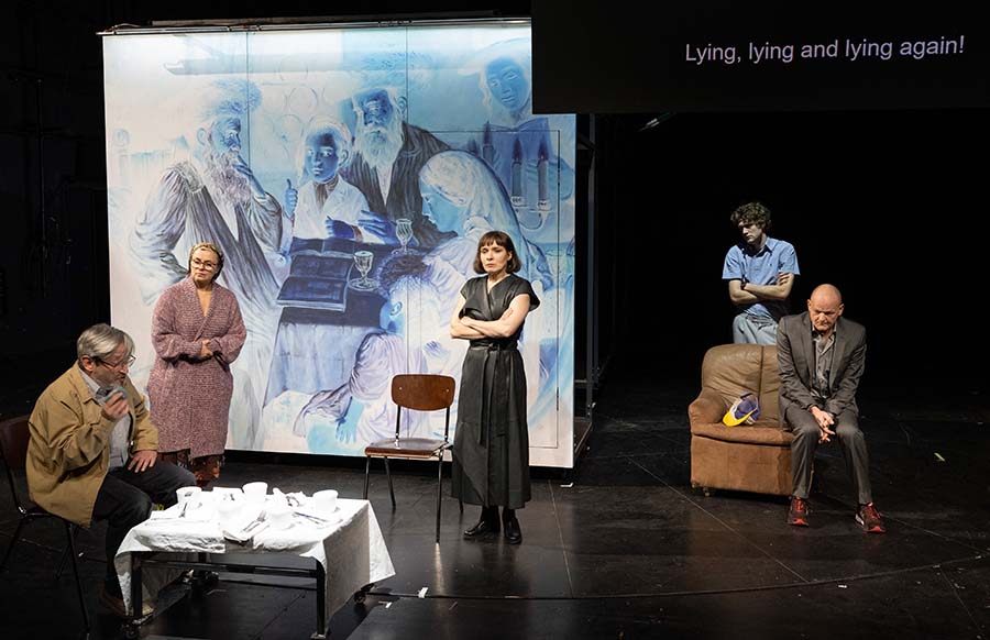 Robert Spitz, Naomi Krauss, Kathrin Wehlisch, Dennis Svensson, Martin Rentzsch, “Vögel”, Berliner Ensemble, Photo: Julian Röder