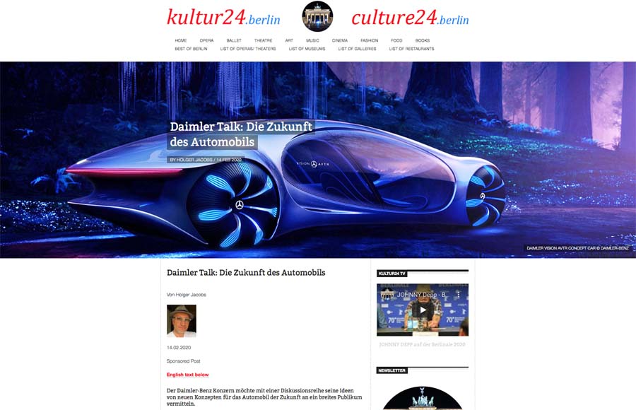 Screenshot Artikel „Daimler Talk – Die Zukunft des Automobils“ © kultur24.berlin