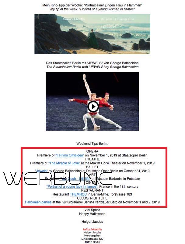 Werbung im Newsletter © kultur24.berlin