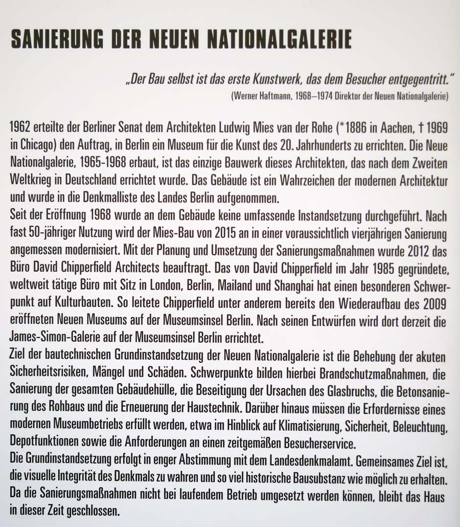 Text zur Renovierung der Neuen Nationalgalerie © Holger Jacobs